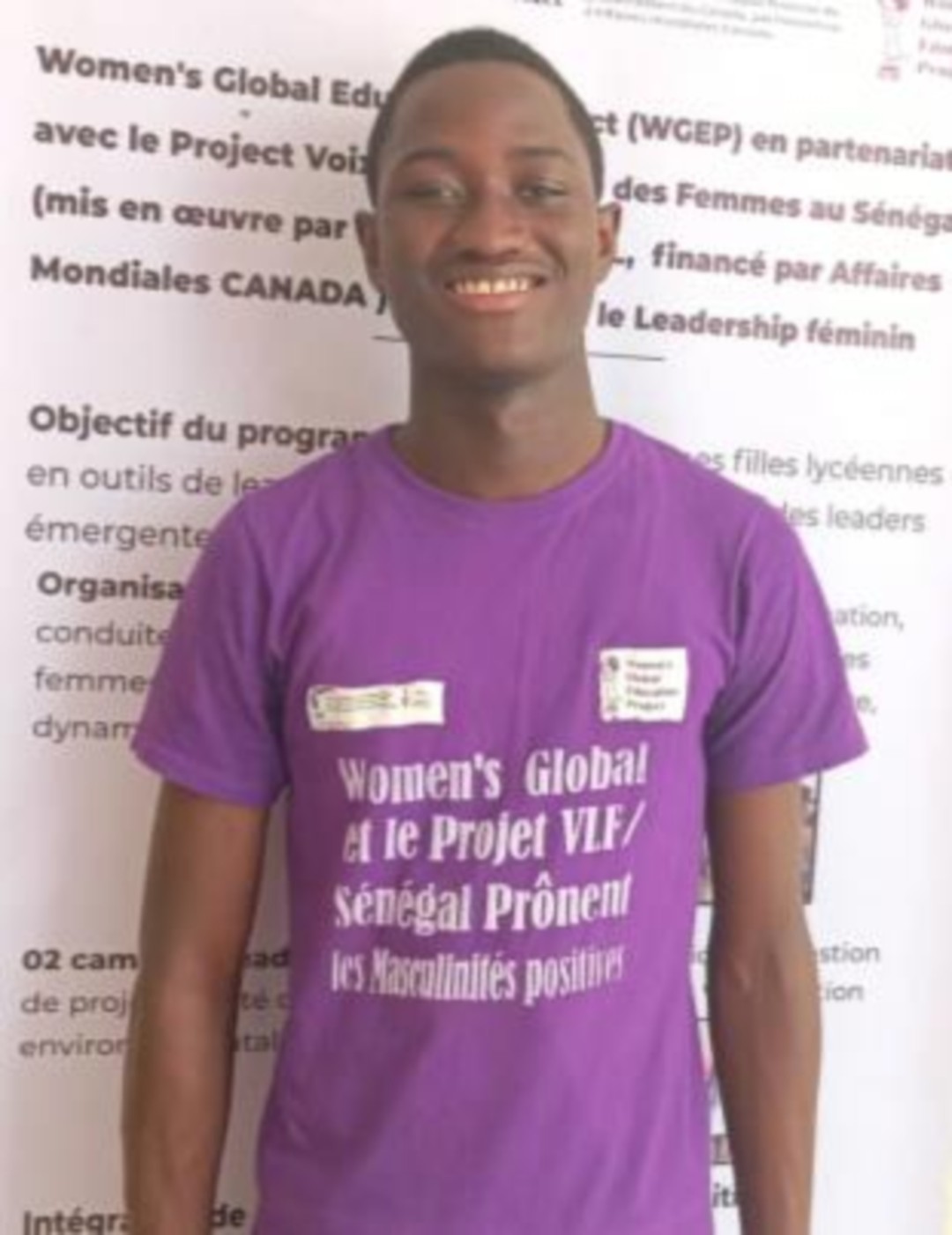 Modou, 17 ans, basée à Sokone, Sénégal : "J'ai rejoint le programme Our Sisters Lead parce que j'ai vu l'impact positif qu'il a eu sur nos prédécesseurs qui sont maintenant des modèles pour notre communauté. Je voulais surtout perfectionner ma communication et vaincre ma timidité." Quels sont les problèmes que vous voyez dans la communauté et qui doivent changer? "Je suis passionnée par la résolution de plusieurs problèmes auxquels la société est confrontée, notamment la fin de la violence sexiste et la lutte contre le changement climatique. Il est important pour moi que nous agissions sur ces questions et que nous sensibilisions nos communautés afin que nous puissions vivre dans une harmonie plus parfaite. Je mettrai à profit les connaissances que j'ai acquises dans le cadre du programme et je serai un modèle pour la prochaine génération. Merci, WGEP, d'inclure les garçons dans le programme à travers le cadre de la masculinité positive".